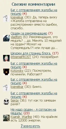 Свежие комментарии - почему только семь? Предлагаю в данной графе добавить ссылку, где можно будет посмотреть последние сто комментариев, в виде отдельной страницы.