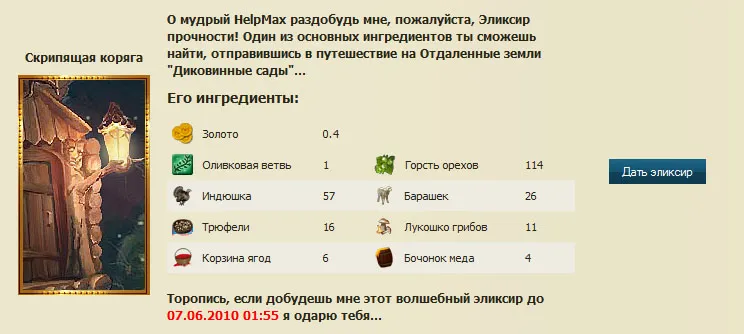 Эликсир можно или купить на ярмарке или добыть самому, для чего необходимо получить ингредиент для конкретного эликсира и в башне магов изготовить нужный эликсир.