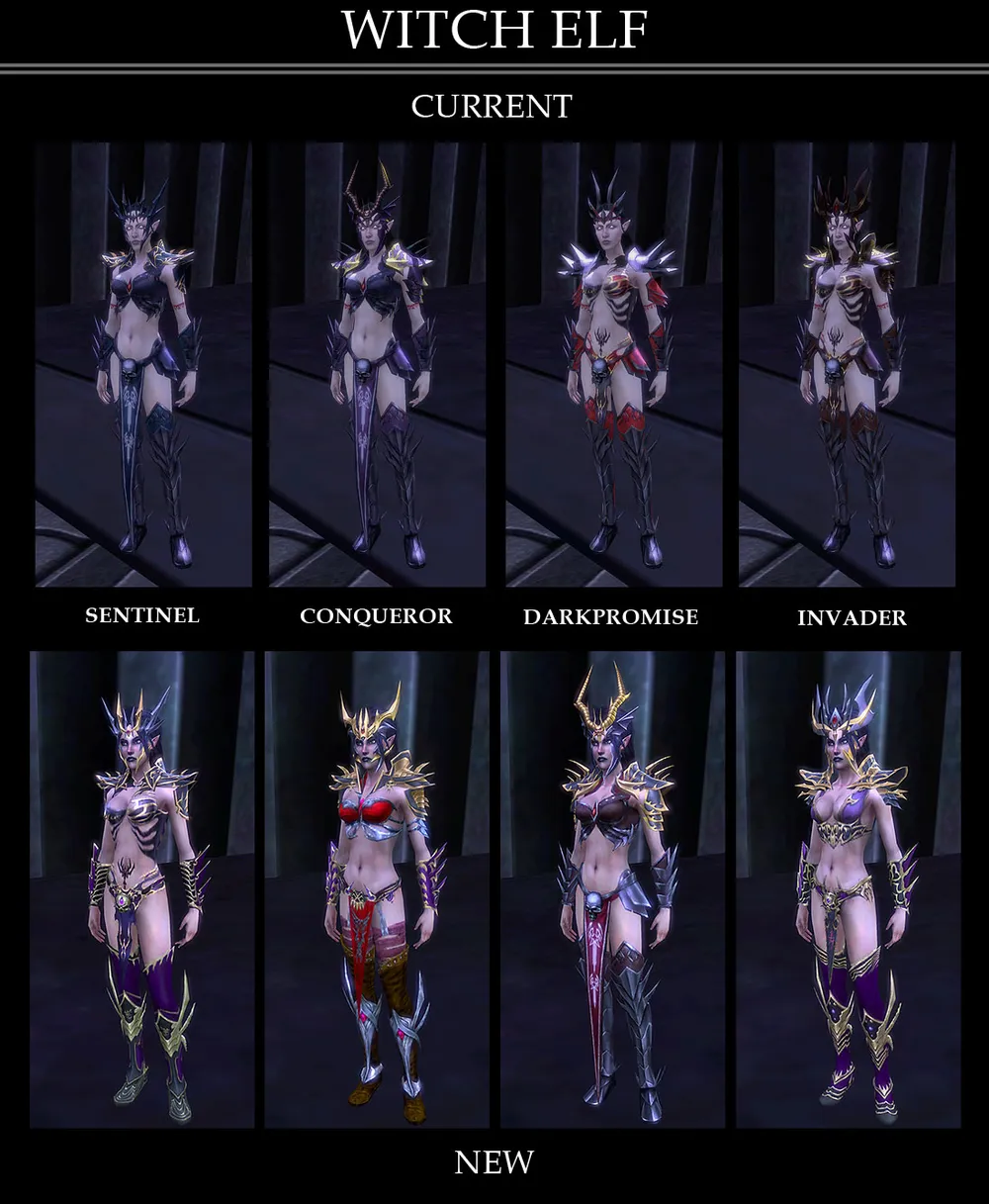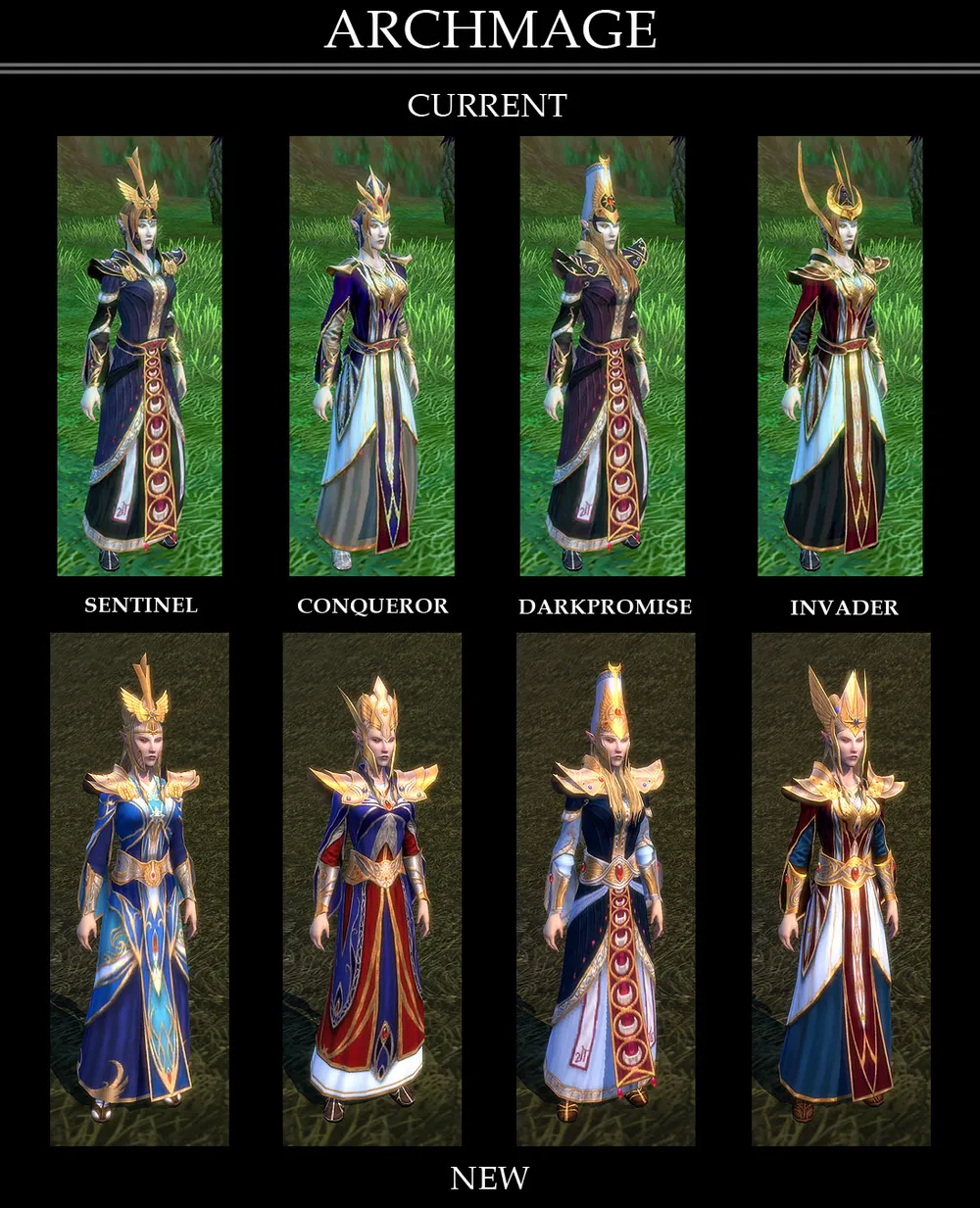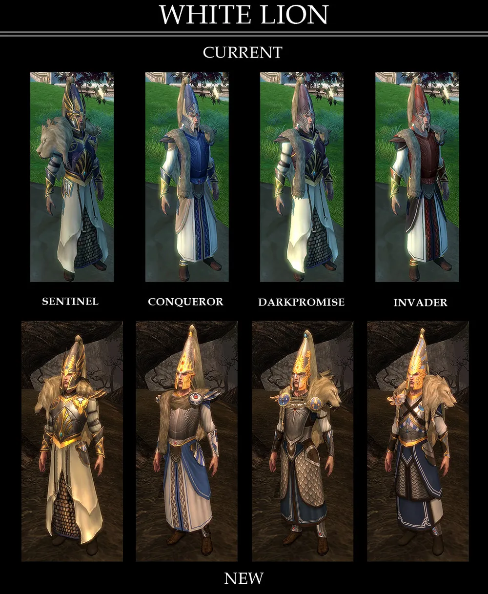 Во второй статье серии «Новый дизайн доспехов» мы рады представить вашему вниманию изменения во внешнем виде доспехов еще восьми карьер. Как и в первой статье, ниже вы найдете изображения «до» и «после» восьми карьер (четыре карьеры Порядка и четыре карьеры Разрушения) в стражницком комплекте доспехов, а также в комплектах Завоевателя, Темного обета и Захватчика.