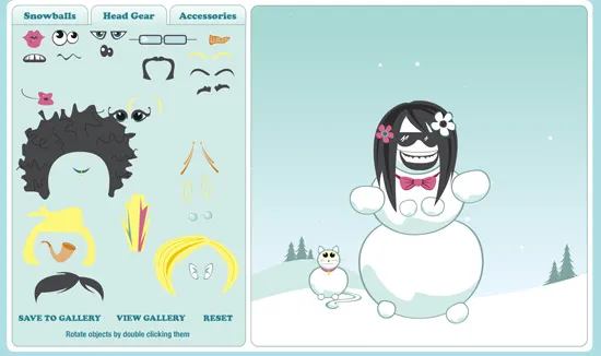 Скажете - бесполезное занятие? А это смотря с какой стороны посмотреть. Собирание фигурки снеговика удивительным образом сократит последние минуты рабочего дня, когда срочных дел уже нет, а все мысли заняты только предстоящими выходными. Дизайнеры из канадского Университета Ватерлоо создали замечательную флэш-игру, цель которой - создание уникального снеговика. Для этого предлагается несколько снежных шаров разного размера, морковки, веточки и другие предметы, которые могут пригодиться для украшения снежной модели - шарфик, галстук, шапка Санта Клауса, варежки и т.д. Для удобства все предметы, которые можно использовать при создании снеговика, разделены на три группы: снежные шарики, предметы для украшения головы и прочие аксессуары. При необходимости любой предмет из коллекции можно повернуть - для этого по нему достаточно дважды кликнуть мышкой.