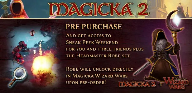 Также, в Steam теперь можно предзаказать игру. За предзаказ вы получите новую робу для Magicka 2 и Magicka Wizard Wars.