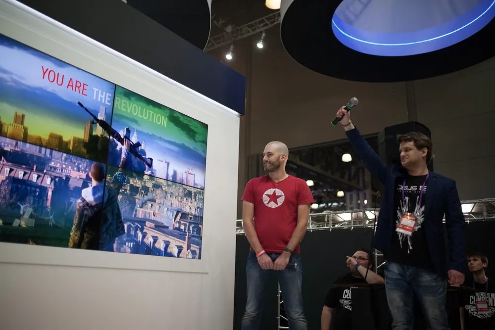 Также во время презентаций игры на нашей сцене, которые вел разработчик игры СиДжей Кершнер, мы демонстрировали специальный трейлер Homefront the Revolution. Этот трейлер был локализован специально для показа на «Игромире». Публика была в восторге от того, насколько точно и честно в нем была передана атмосфера игры!