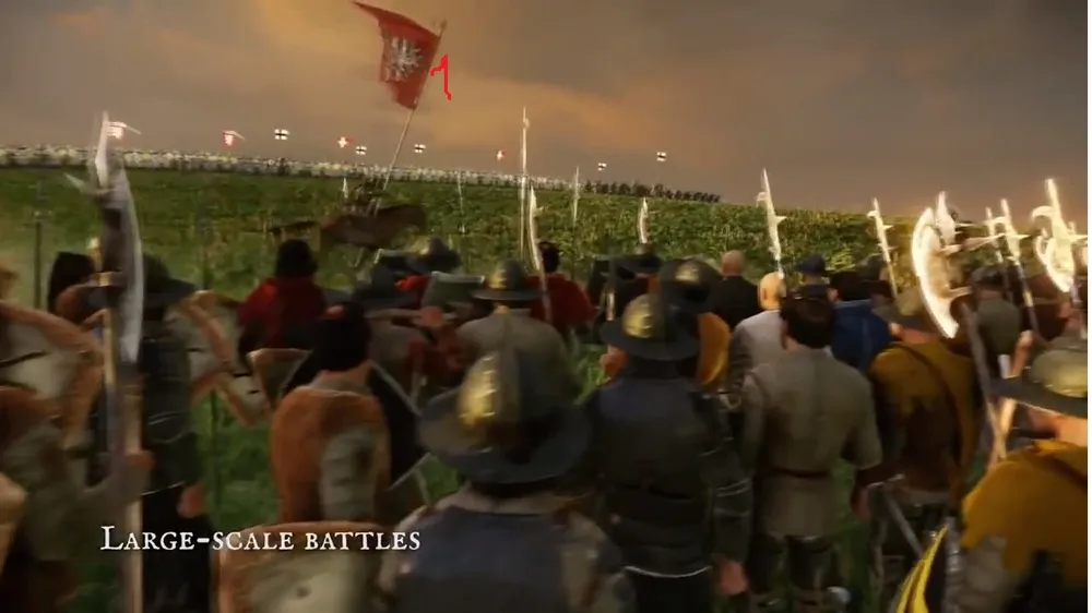 Еще можете внимательно посмотреть на пехоту. практически все без доспехов, у кого-то есть шлем у кого-то щит и т.д. Полного комплекта защиты у пехоты нет. Это нормальное явление, т.к. основная часть пехоты были призванные крестьяне, благо если их граф раздаст хоть какое-то оружие, мог и просто так кинуть их в бой. Пехота это всегда мясо. Рыцари по своему кодексу не убивали друг друга, а оглушали, брали в плен и потом родственники захваченного платили выкуп.