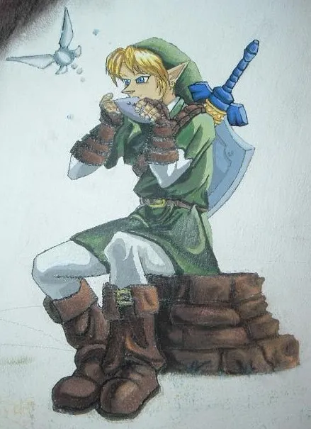 Окарина - древний духовой музыкальный инструмент, глиняная свистковая флейта. Звук похож на звук флейты, но чище. В европейскую культуру вошла в 19 веке, название взято из итальянского языка, переводится как гусёнок. С помощью волшебной окарины Линк мог перемещаться во времени.