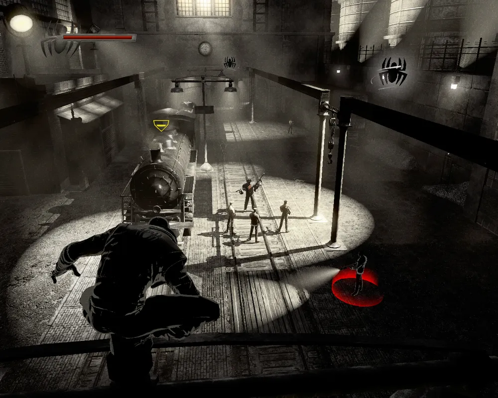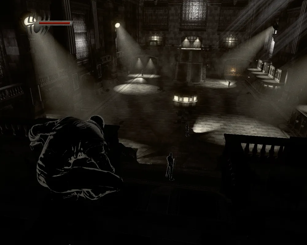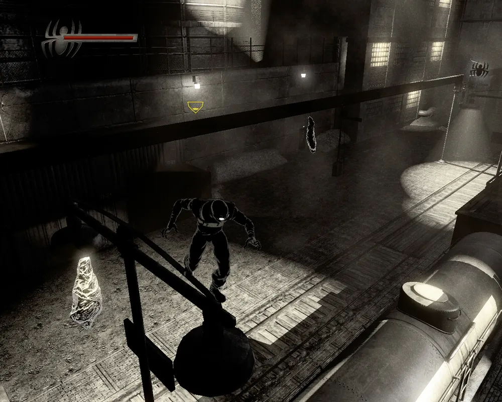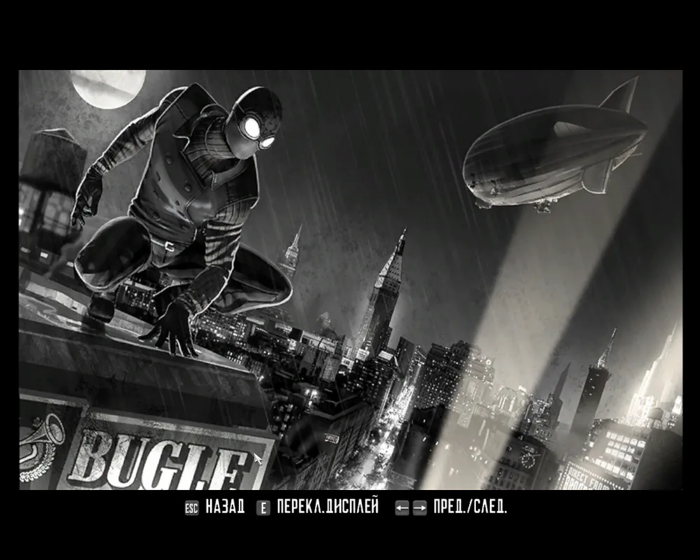 Тащат проект его главные фишки – четыре совершенно не похожих друг на друга вселенных, четыре Человека-паука, облаченных в свои неповторимые костюмы и обладающие собственными способностями. Если расставлять измерения по степени крутости и интересности, то первое место без сомнений получает SM Noir. Во-первых, темная гамма, стилизованная по старину (действие разворачивается в 30-х годах), это круто. Во-вторых, как я считаю, костюм у тутошнего Паука самый стильный из всех. В-третьих, наш герой наконец-то перестал быть «имбой» среди десятка вооруженных до зубов противников. Чтобы выжить и выполнить свою миссию, придется изрядно попрятаться и изрядно полазить по темным закоулкам, всячески избегая света. Noir, кстати, пока еще молодая вселенная (имеется в виду именно SM Noir; помимо этого, кстати, как верно подметил Corran1138, существует "по 4 выпуска Punisher, Wolverine, Iron Man, Daredevil, Luke Cage, 1 выпуск Weapon X и 8 выпусков X-Men"), еще толком не успевшая обзавестись приличным количеством комиксов. Ну и,в-четвертых, именно тут блестяще себя демонстрирует графика и визуальный стиль игры Beenox Studios: игра свето-тени просто бесподобна, а текстурки окружения очень даже неплохи.