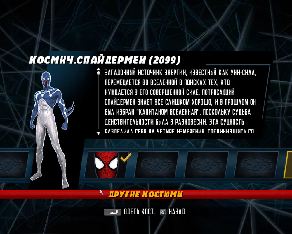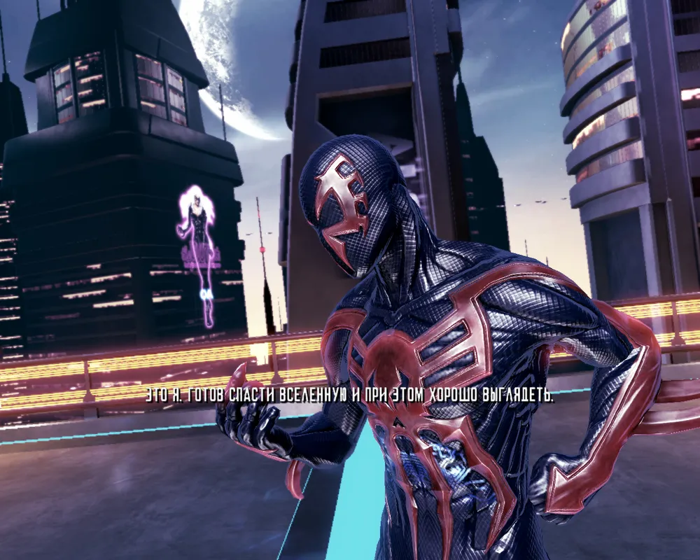Второе место в списке лучших вселенных, реализованных в SD, по-праву занимает Ultimate Spider Man. Человек-паук примеряет на себя костюм-симбионт и становится обладателем мощнейших способностей, которые читатели могут припомнить по многочисленным комиксам, либо из фильма «Человек-паук 3». Первое крупное дело за доброго Венома, правда, выйдет не самым интересным: противостоять нам будет Электро. Приготовьтесь к тому, что монитор вашего компьютера периодически будет ослепляюще мерцать красно-зелеными цветами. Предпоследнее место в своеобразном топе занимает классический The Amazing Spider-Man, который нашел свое место в многочисленных мультсериалах, двух кинолентах и сотне разнообразных комиксах. Предпоследнее потому, что «красно-синий» Спайди уж очень знаком нам по прошлым играм про супер-героя, и все то, что предоставили нам разработчики, воспринимается на минимальных эмоциях. Последнюю позицию я отдал вселенной будущего: Spider-Man 2099. Несмотря на внушающий раскрас боевого костюма Человека-паука, 2099 год не запомнился абсолютно ничем. Одноликие здания, слабый поток летающих автомобилей и минимум драйва – не это я ожидал увидеть, глядя на скриншоты игры.