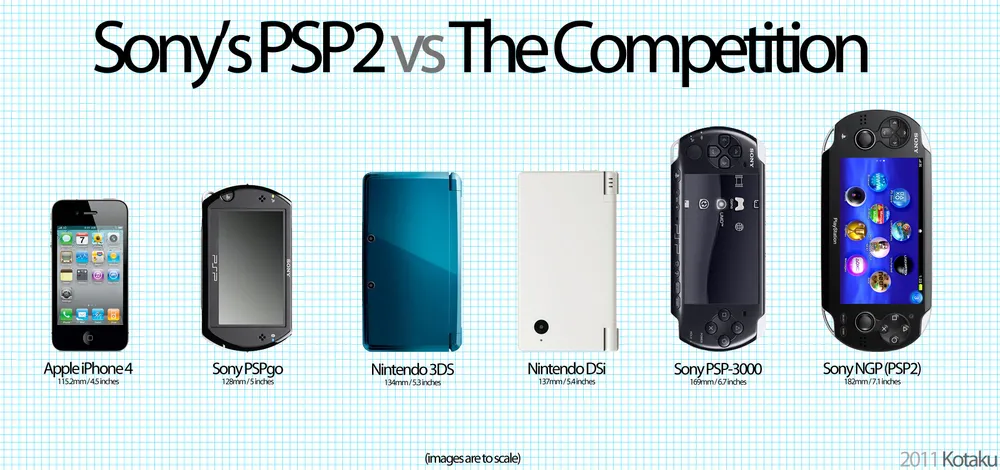 Как видно на рисунке, NGP И 3DS заметно больше своего яблочного оппонента.