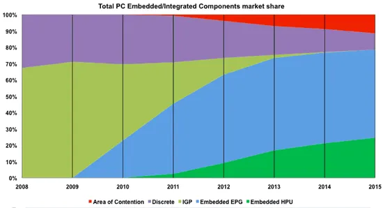 Графические процессоры (GPU) и чипы со встроенной графикой (IGP, HPU, и EPG) являются опережающим индикатором рынка персональных компьютеров. Связано это с тем, что как минимум один (а иногда два и более) графических ускорителя используется в составе одного ПК. Аналитики сообщают, что с 2011 года поставки ПК выросли на 115%, в то время как отгрузки графических чипов возросли на 145%.