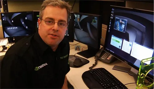 Руководитель подразделения технического маркетинга MCP NVIDIA Том Петерсен (Tom Petersen) рассказывает о работе графического адаптера GeForce GTX 480 в популярном тесте Heaven Benchmark. В основе данного программного продукта лежит движок Unigine, обеспечивающий поддержку как DirectX 9/10/11, так и OpenGL. Том Петерсен объясняет, как при помощи технологии тесселяции можно улучшить качество графики.