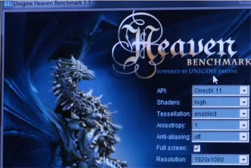 А теперь, давайте внимательнее просмотрим ролик еще раз. Обратите внимание на версию бенчмарка Heaven Benchmark.