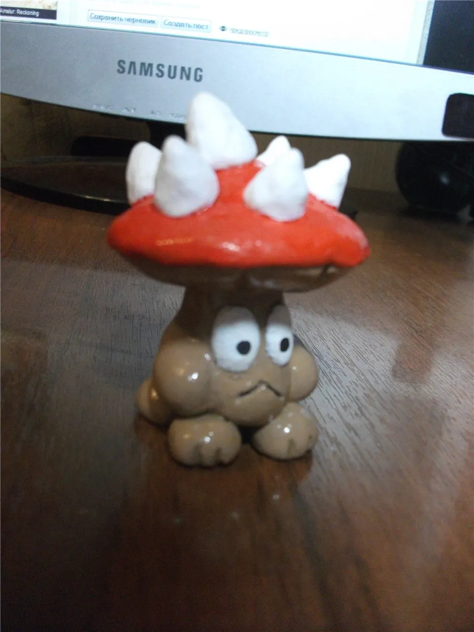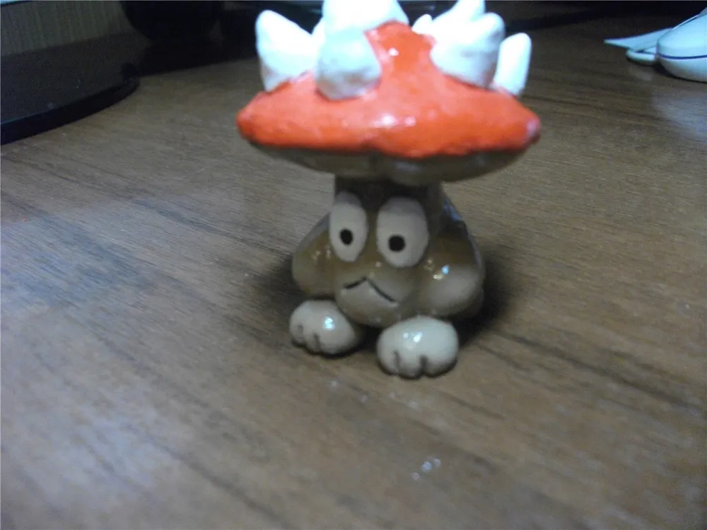 Ну чтож, мушимуш испёкся, остыл и пришло время для покраски. Советую начать с покраски тельца и лапок, а затем покрасить шипы и глаза а в последнюю очередь шляпку: