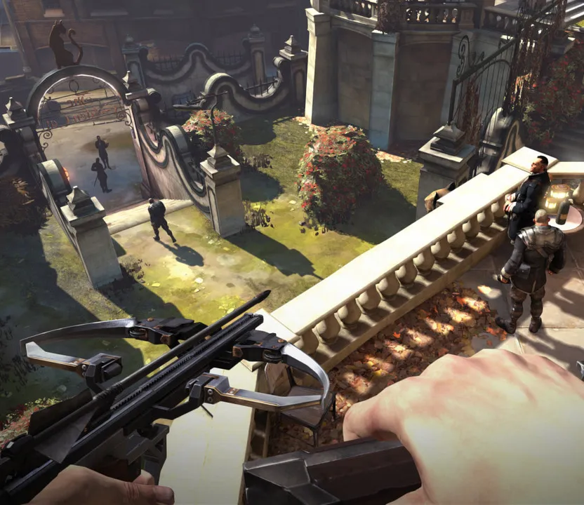 Глядя на спокойствие и безмятежность этих разноуважаемых джентльменов, можно ненароком подумать, будто вооруженный до зубов Корво, сидящий в паре метров от них, вообще ни разу не палится.