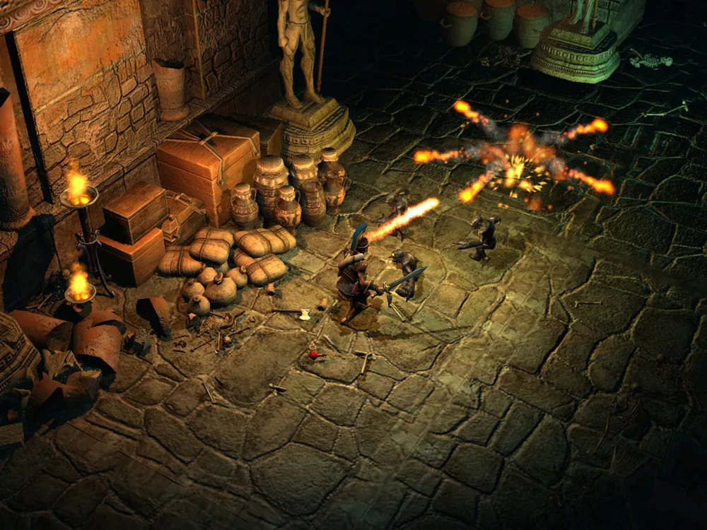В игре три уровня сложности (обычный, эпик и легенда) и четыре акта (Греция, Египет, Восток и Олимп). Ваш герой путешествует по исторически вкусным местам, регулярно натыкаясь на памятники древнего мира. Каждый город, который встретится вам на пути, каждая сволочь, которая попробует отпилить вам ногу, каждая вещь, которая выпадет из монстра прямиком в ваш карман, - все это буквально пропитано духом приключений в античном сеттинге. Вы сможете побывать в древних городах и оторвать рога целой куче мифологических чудищ. Минотавр расхулиганился? Заборем! Медузы распоясались? Накажем! Фараоновы статуи ожили? Умертвим! Когда среди «рядовых» мифологических образин встречаются интересные боссы и полубоссы, это только добавляет игре очков.