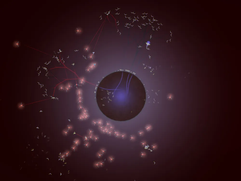 Подробнее о механике. В Eufloria существует ровно один вид юнитов. Да, ровноодин. Это, кто бы вы подумали, листья. Но не простые листья, а листья, которые падают с деревьев, растущих на астероидах и умеющие летать в космосе и стрелять во врагов. Враги, кстати, тоже листья, а космос не простой, а молочно-белый. Строений в игре больше - их двое - это обычное дерево (или дерево Дайсона), время от времени отпочковывающее новых юнитов, и защитное дерево-репейник. Ресурсов тоже один вид, и это те самые листочки-юниты. Чтобы посадить новое дерево, нужно пожертвовать 10 листьев.
