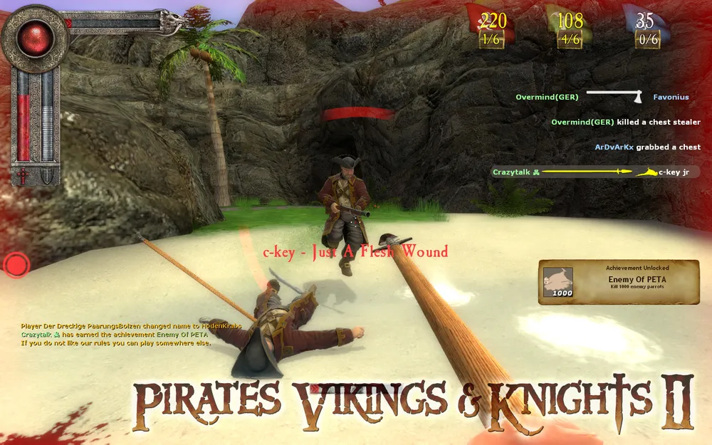 Динамичный игровой процесс. Все уже наверняка привыкли к тому, что в командных боевиках приходится принимать участие в противоборстве двух команд. В Pirates Vikings and Knights II команды три: как нетрудно догадаться, пираты, викинги и рыцари. Противоборствующие стороны сражаютnicknameся ради достижения своей цели, меняющейся в зависимости от текущей карты. Занять определенную местность и защитить ее, разыскать и удержать святой Грааль, стянуть из-под носа у врага сундуки с сокровищами. Возможен и такой вариант событий: пираты должны опередить викингов и, выполнив цепочку заданий, захватить оплот рыцарства. Наконец, это может быть просто бой безо всяких задач.