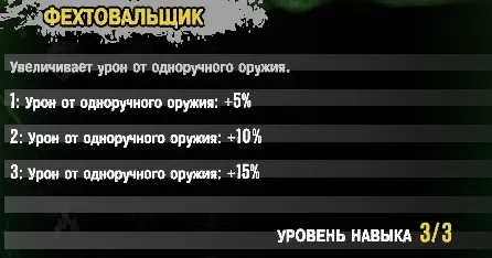 Увеличивает урон от атак одноручным оружием до +15%. Качать смысл есть, определенно.