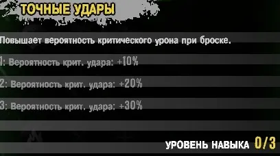 До 30% прироста к вероятности нанести крит. Весьма полезный навык для вас, если вы частенько используете метательное оружие.
