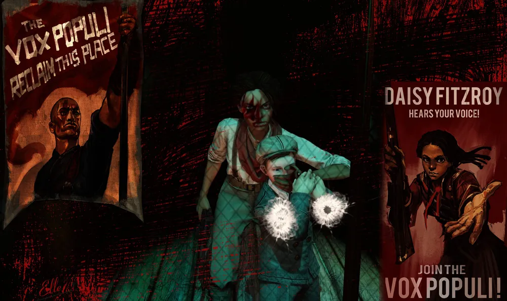 Увидав истинное лицо анархистов, готовых стрелять в детей, мистер ДеВитт ясно выскажется: "Комсток и Фицрой... Имена разные - суть одна" (или что-то вроде этого). Корво ничего не скажет. Его отравят и бросят умирать. Но он выживет и вернется... Кстати, не без помощи неожиданно вышедшей на сцену третьей фракции - тех, кто в водовороте всеобщей вакханалии жестокости и ненависти предпочел остаться или попытаться снова стать человеком (экс-лоялисты Пьеро и Самуэль, экс-союзник лорда-регента ассасин Дауд). Появится неожиданный помощник и у Букера - изрядно постаревшая Пророчица Элизабет, которую, видать, даже время не смогло сломить окончательно.