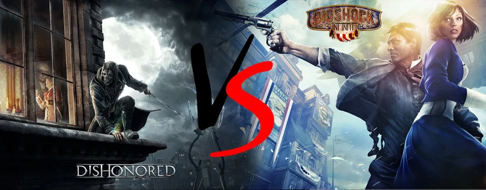 Видит Бог, я сопротивлялась этому сравнению, как могла. Я убеждала себя, что мнение некоего г-на Кёрка Гамильтона (в переводе нашего коллеги по Груше и не только) - не более чем троллинг ради привлечения внимания то ли к себе любимому, то ли к новому БиоШоку. Старалась не придавать значения карикатурам и скриншотжабам (по аналогии с фотожабами) на тему Dishonored vs BioShock Infinite, попадавшимся мне порой на просторах всемирной сети (чего только народ ни придумает!). Однако, пройдя BioShock до Трущоб, я вдруг поняла: больше закрывать глаза на напрашивающиеся сами собой параллели не получается. А раз навязчивую мысль не получается просто выкинуть из головы, остается только одно - принять ее, попытаться рационализировать и вербализировать. Именно так я и поступила. Причем, в отличие от уже упомянутого г-на Гамильтона, я решила не зацикливаться на геймплее и видимой картинке, а копнуть глубже, постараться понять и прояснить базовые идеи и принципы, заложенные в сюжетах обеих игр (мне как признанному инвалиду умственного труда без сюжетных костылей игру пройти проблематично, и, как всякий инвалид, я очень к своим костылям привязана).