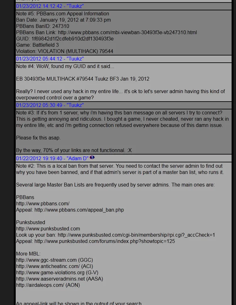 В течении этих четырех лет, некоторые админы умели, использую уже другую дыру в системе Pbbans, банить игроков на своем сервере, но при этом они оказывались в глобальном банлисте. И даже если вы подадите апелляцию, то в ней вам откажут, ибо бан внешне был идентичен бану за какой-нибудь чит. Но об этом способе, слава богу, знали лишь немногие, ибо эта была информации не то, что не паблик уровня, но и даже на закрытых приватных хак-форумах, это не публиковалось. Эти люди понимали, что злоупотребление этим ни к чему хорошему не приведет и потому глобальной катастрофы не случилось, о чем я даже жалею. Ведь тогда, быть может, EvenBalance проснулись от летаргического сна и, быть может, принялись бы что-то делать.