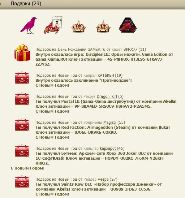 хочу обратить ваше внимание, что с 28 июня 2012 виртуальные подарки старого образца, полученные вами в хода уже завершенных акций, будут удалены из ваших профилей. Пожалуйста, сохраните всю необходимую вам информацию в своих молескинах (ключи и прочее).