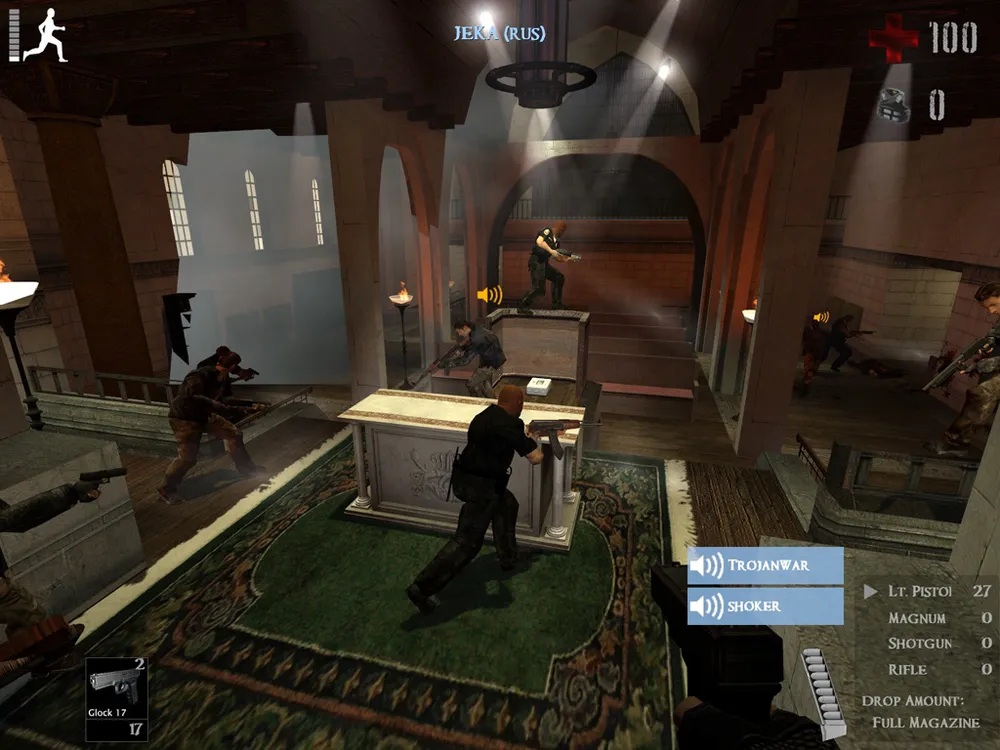 В игре присутствует несколько их видов — PPK, glock17c, glock18c и USP. У PPK семь патронов в обойме, поэтому его сразу вычеркиваем, ибо это слишком мало, чтобы эффективно сражаться. Лучше уж кастрюлей, ей-богу. Модели глоков практически идентичны, с 17 патронами в каждом, разве что восемнадцатая модель чуть мощнее. Но лучший выбор — это USP. Всего на два патрона меньше по сравнению с «глоком», зато убойная сила ощутимо выше.