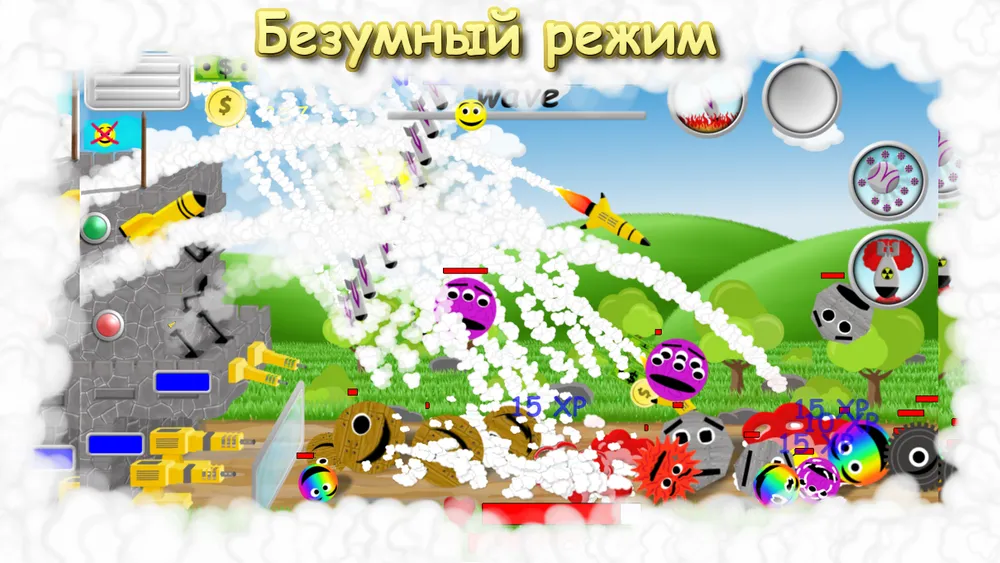 Также в безумном режиме во время игры падают бонусы которые если успеть собрать могут дать дополнительный урон пулемету или ракете, дополнительные пули при выстреле которые разлетаются в стороны либо дополнительные ракеты при пуске ракеты или просто опыт, деньги, золото.