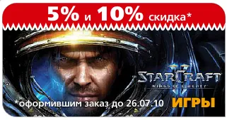 А магазин 1С-Интерес начал принимать предзаказы. Те кто купят StarCraft 2 до 26 июля, получат скидку 10% на джевел-версию (449 рублей) или 5% на DVD-box (949 рублей).