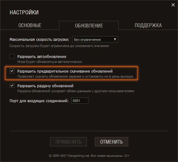 Для начала автоматической загрузки в настройках лончера должна быть выставлена галочка в пункте «Разрешить предварительное скачивание обновлений» (по умолчанию он активирован).