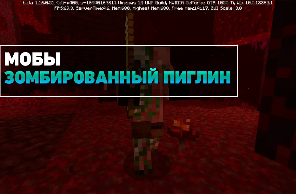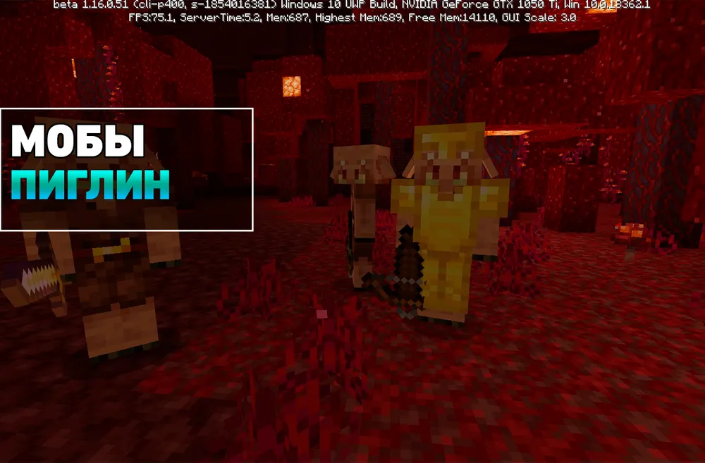 Заметим и зомбированного пиглина - именно так в Minecraft Pocket Edition 1.16.0.51 зовется свинозомбичеловек.