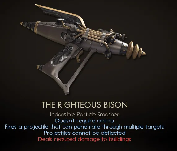 Благословенный бизонтак же как и его пятитысячный собрат не требует патрон и атакует энергией частиц. Заменяет дробовик, при выстреле из него вылетает заряд, пролетающий через несколько врагов и который нельзя отразить сжатым воздухом. Кроме двух пушек, в игру были добавлены 2 шляпы, 1 жетон (слот Разное) и насмешка «Самоуверенность».