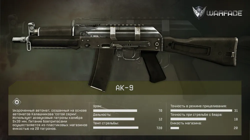 АК-9 для инженера - новое мощное раритетное оружие, отличающееся от Kriss Super V увеличенным уроном и уменьшенным темпом стрельбы. Требует открытия у поставщика.