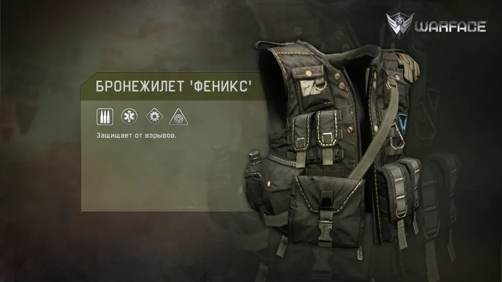 Бронежилет "Феникс", дающий дополнительную защиту от взрывов - для всех классов. Имеет уровень "обычный" и доступен за варбаксы даже новобранцу.