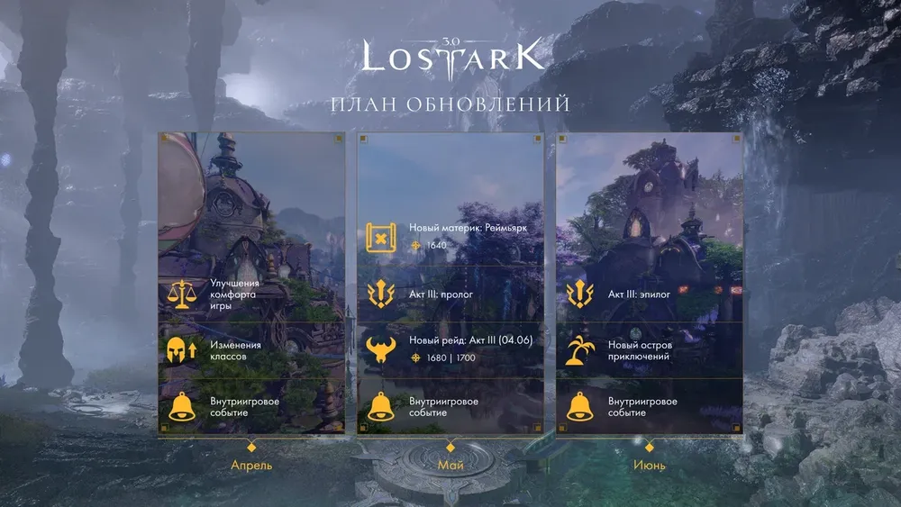 В апреле героев ждут изменения классов и внутриигровое событие. В мае будет доступен новый материк Реймьярк, а также начнется пролог сюжетного Акта III c новым рейдом. А в июне игроки смогут пройти эпилог Акта III и повеселиться на новом острове приключений. Подробнее по ссылке.