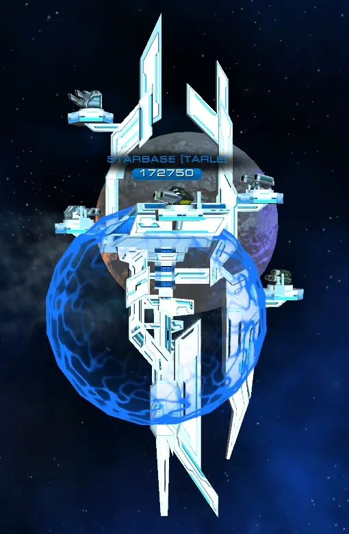 - Старбазам добавлен щит, за которым могут прятаться корабли защитника. Щит можно усилить повышая ур. Старбазы или Улучшениями. Однако в отличии от кораблей, Старбаза в не может восстанавливать свой щит во время боя.