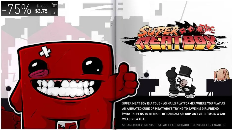 Другой новой фишкой станет Super Meat World – специальное местечко, где будут выкладываться новые связки карт для определенных персонажей, созданные как сотрудниками Team Meat лично, так и другими разработчиками, в числе которых Gaijin Games (серия Bit.Trip) и Майкл О’Рейлли (платформер I Wanna Be The Guy). Super Meat World будет открываться после того, как игрок соберет 20 бандажей, и располагаться на экране выбора главы, прямо перед первым уровнем The Forest.