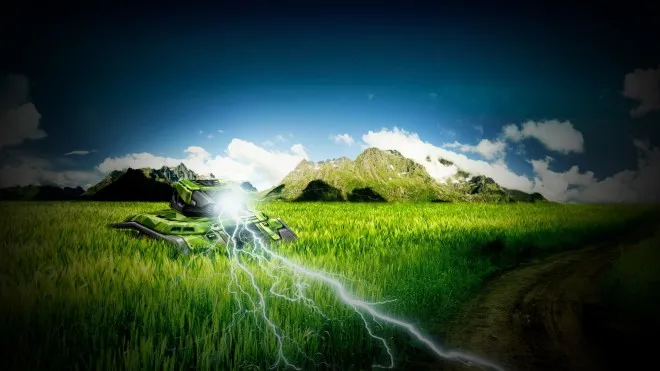Первый урок посвящён азам создания коллажей и научит вас буквально за 10 минут вставлять нужный танк на полюбившуюся картинку и обрабатывать изображение соответственно вашим желаниям. В этот раз мы сделаем вот такую картинку (кликните для увеличения):