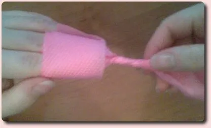 Намотайте салфетку на указательный и средний пальцы, при этом отогнутая часть салфетки должна оставаться снаружи.