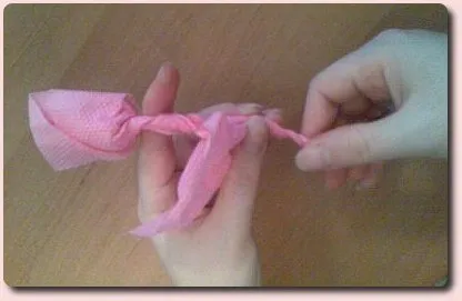 Крепко сожмите салфетку правой рукой чуть ниже пальцев левой руки.