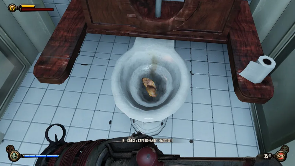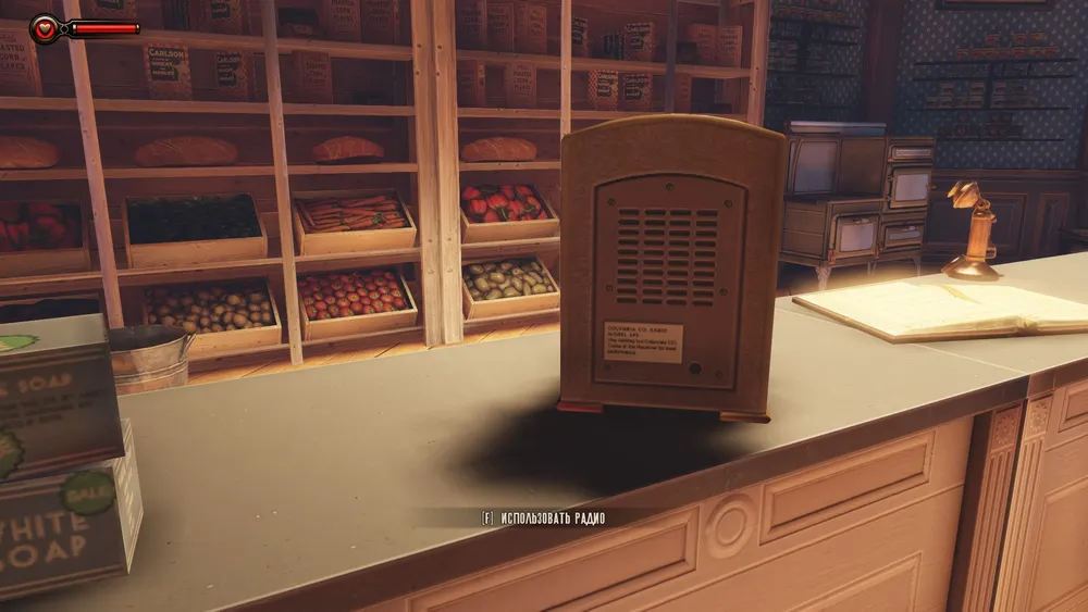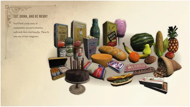 Продовольствие восстанавливает здоровье, но в небольшом количестве. Вы можете найти многие виды съестного почти везде при продвижении по локации, но порой надо найти несколько продуктов, чтобы полностью восстановить здоровье Букера, если он действительно сильно ранен.