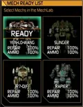 Мех в боксе можно продать (при этом выбрав, продавать ли его снаряжение), поместить в список на главной или убрать оттуда, а также отремонтировать и пополнить боезапас, если отключена автоматическая починка.