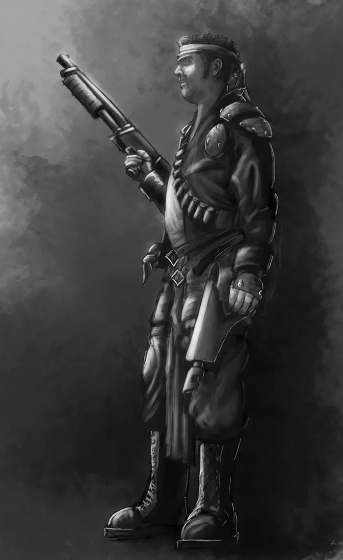 Как и все Шныри, эти носили обычные серые спецовки, перетянутые широкими кожаными поясами. Череп каждого был выбрит и покрыт татуировками в виде крестов, стволов и символов банды. Они носили начищенные сапоги по колено, а у двоих были полицейские дробовики Арбитров, явно стянутые с трупов пары Бронзачей. Они как-то слишком явно готовы были их применить и, если бы сделка превратилась в перестрелку, пришлось бы убирать эту парочку первыми.