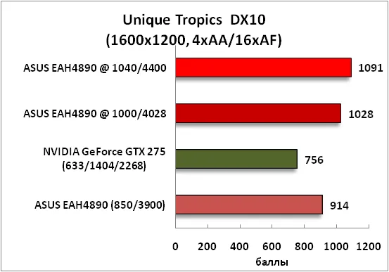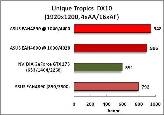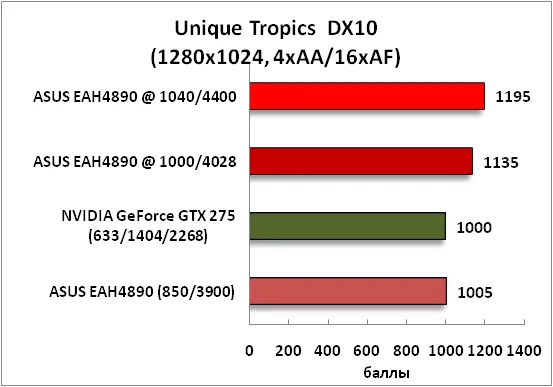 Разгон ASUS EAH4890 приносит солидные дивиденды в виде "попугаев" и позволяет видеокарте ASUS обойти NVIDIA GeForce GTX 275.