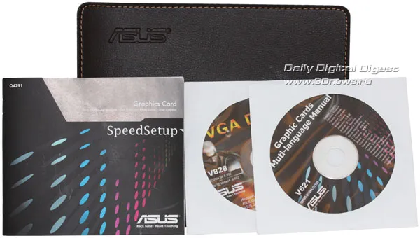В комплекте ASUS EAH4890 есть все, что необходимо пользователю для решения любых задач, на которые рассчитана эта видеокарта. Кроме того, производитель вложил в комплект небольшой бонус - коврик для мыши c фирменным логотипом ASUS.