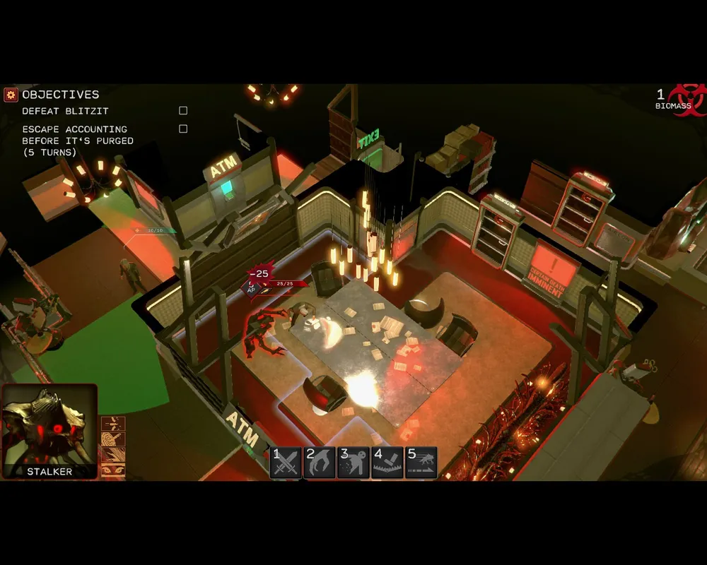 Кстати, игра вообще часто подбрасывает дополнительные условия. После первых двух уровней задание никогда не сводится к простому «убей всех людей». То надо защитить Матриарха, пока она пытается пробить дверь. Причём желательно сделать это без потерь. Или, наоборот, один из уровней надо пробежать за ограниченное время. И в качестве дополнительного задания — убить пару элитных наёмников.