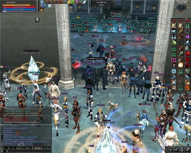 - Пришел из-за идеи игры - противостояние рас, нисколько не пожалел, нашел все, что хотел - коллективы людей в каждой расе, невозможность даже перекинуться словами с другими расами в обычном чате. Великолепные замесы, доходящие в лучшие времена 100 на 100 (а иногда бывало и не 2 расы на "флаге") и даже больше, нереально жесткий Антвар(массовый ивент) во времена отсутствия доминирующей расы. Осады крепостей в е2 - 1 раз в 2 недели, но зато очень запоминающиеся для всех рас, участвующих в осадах. Взятия городов "на ленточке", когда почти умирая флаг таки добивали, ну или наоборот деф "на ленточке" - флаг с 0-1% ХП....