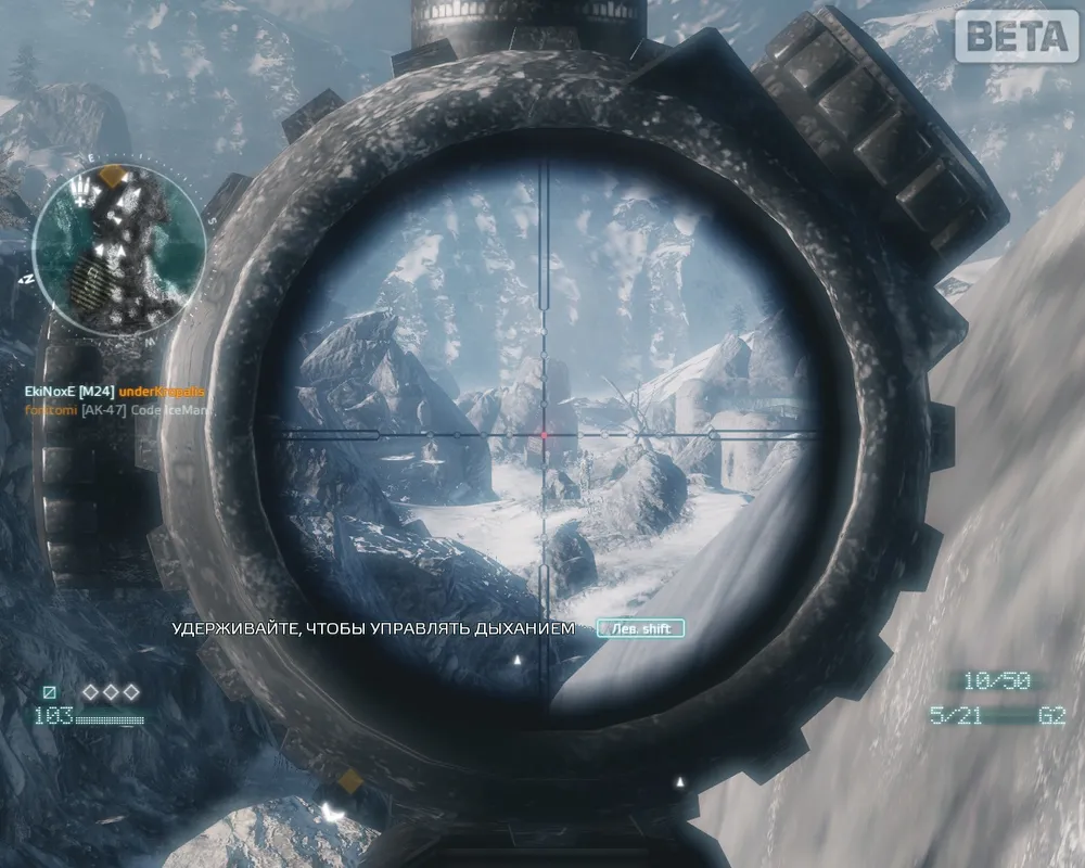 Во-первых, это голосовая связь. Карты совершенно небольшие, так что игра превращается в тупое набивание фрагов – и все равно, что надо всем вмести рашить позицию – две калеки будут бегать по полю, а остальные пытаться их отстрелить из снайперских винтовок. На замкнутых картах народ просто бежишь куда глаза глядят и отстреливает все, что движется, а что, тоже интересно. Но ведь в игре зарыт большой тактический потенциал! Небольшой слаженной командой из 4-6ти человек «стадо» врага можно разнести в пух и прах. Может к финалу все-таки исправят?