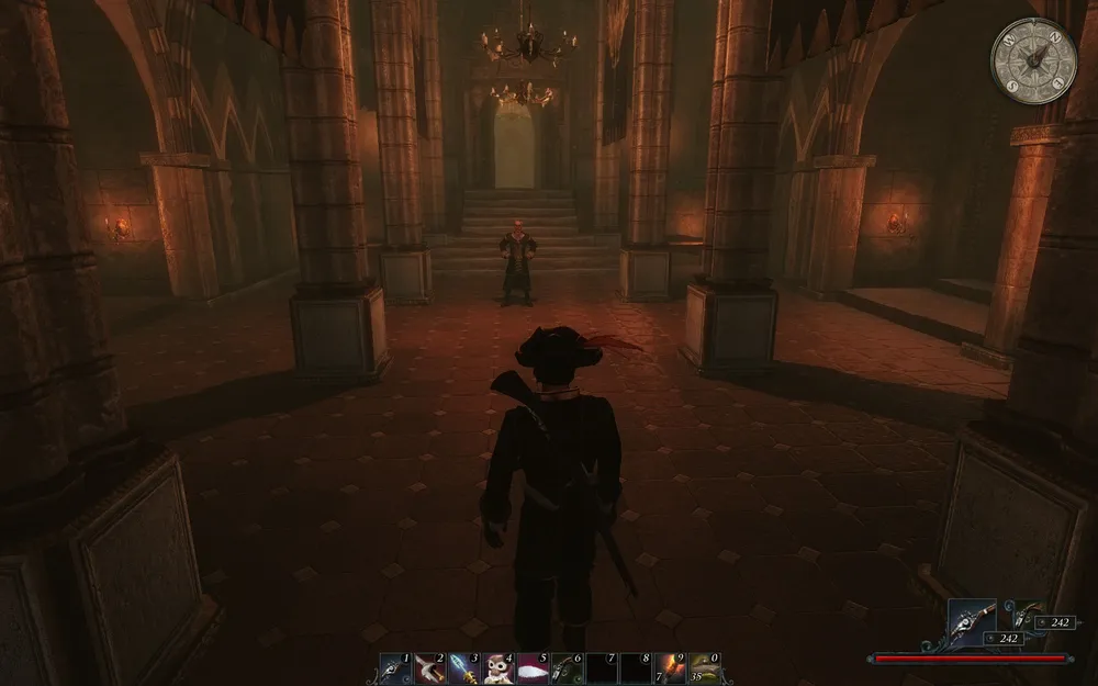 Ваши возможности тоже весьма разнообразны, и включают такую экзотику, как оглушение противника кокосом, ослепление его пригоршней песка в глаза или даже атака боевым попугаем. Но все эти трюки меркнут перед силой и славой мушкетов. Когда вы получите один – играть станет намного легче. Не обязательно ваш собственный, мушкет напарника тоже сгодится. А уж обладая двухствольным образцом, вы будете снисходительно улыбаться всей акробатике местных копейщиков.