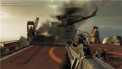 И не успев нарадоваться долгожданному сюжету, мы бросаемся в бой и тут-то, становится понятно, что Treyarch переплюнули Infinity Ward во всем. Там где Modern Warfare показывала нам пять взрывов в одном кадре, Black Ops дает нам десять. Там где Modern Warfare2 давала пострелять из станкового пулемета, Black Ops сажает нас за руль автомобиля. Да и вообще новый Call of Duty солидно прибавил в интерактивности. Казалась бы банальная сцена со спуском по канату, выполнена очень реалистично. Одной кнопкой мы отталкиваемся от стены, другой тормозим, если вы вдруг оттолкнетесь очень сильно и вовремя не успеете затормозить, улетите вниз. Те же эпизоды в которых нам придется управлять средствами передвижения выполнены не как банальная кат-сцена, а нам на самом деле придется управлять машиной/катером/вертолетом. Кстати насчет вертолета, если вы думаете, что здешний полет это нечто похожее на аналогичный уровень из недавней Medal of Honor то вы сильно заблуждаетесь. Там где Electronic Arts дали нам всего навсего тир, Treyarch суют в руки штурвал и приказывают лететь. Великолепные пейзажи насладится которыми не дают разве, что ракеты от которых приходится уворачиватся каждые несколько секунд.
