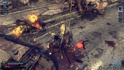 Конечно, внимательный игрок сразу поймет, из каких "Шестерней войны" сбежали местные персонажи, серьезные мужики в громоздких доспехах. Однако ж аномальная фауна смотрится весьма любопытно - этакие пучки сельдерея на ножках - выглядят действительно жутковато. Хорошо, что чем дальше, тем более антропоморфные чудики лезут на свет. Искусственный интеллект супостатов вполне неплох, правда, все равно порой умудряются показывать чудеса неадекватности. И, кстати, коли речь зашла о противниках, настало время поговорить о боевой системе. Не зря ведь на обложке компакт-диска буквально третьим пунктом среди особенностей игры значится не что иное, как «Расчлененка».
